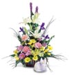 This graceful arrangement of gladiolus, iris and lilies create a stunning display for this important holiday.