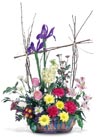 For a spectacular gift, this handcrafted basket is the setting for iris, carnations, alstroemeria and tulips that will accent your Easter gathering.