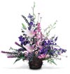 Just knowing you're thinking of them will help brighten a day. So will Dendrobium Orchids, Delphiniums, Lilies, Poms, Liatris, Eucalyptus and greenery in a natural basket. |