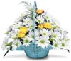 Yellow rays of Roses part the white Daisy clouds in this cheery handled basket. It's your way of sending a little sunshine. |