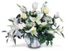 In their clear glass vase, these pure white Tulips, Sweet Williams, Roses, Lisianthus and more seem to float. Your heart just may soar a little, too. |